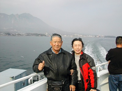 2001/11/25 午前 07:45 今日は島原からフェリーで熊本に渡り、 阿蘇・大観望と回りやまなみハイウェーを通り、 あこがれの湯布院へ向かいます。 |