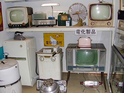 真空管のテレビが縞模様になると、よく横をたたいて直したよねぇと お父さん。あっ、あの冷蔵庫は家で初めて買ったのと同じ型だ!と主人。 |
