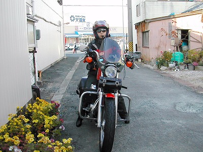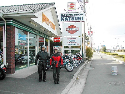 午後 02:32 お父さんのハーレーを修理して頂いた 「レーシングショップカツキ」さんに到着しました。 |
