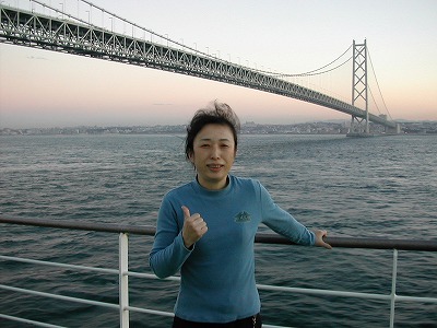 2001/11/27 午前 06:41 明石海峡大橋をくぐったところです。 済みません、寝起きのすっぴんをさらして・・・ 緊張の連続で眠れない夜が続いて、寝不足気味です。 |