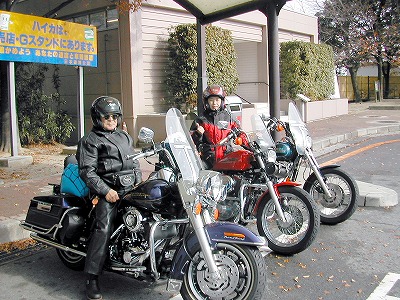 午後12:20 湯布院「岩下コレクション」を後にして、 お父さんのハーレーを修理して頂いている、宇佐市の 「レーシングショップカツキ」さんに向け出発します。 ここまでは主人のバイクに、お父さんがタンデムして いたのですが、ブレーキを掛けるたびにヘルメットが ガッチンコ!。 慣れている私がタンデムして、お父さんに私の883を 運転してもらいました。 |