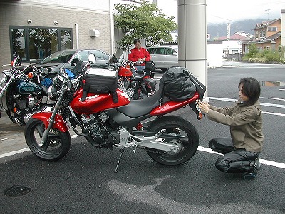 ![]() 午後 01:36 一風呂浴びて出てきたら、なんとツーリングクラブの リーダ、M@額田さんとバッタリ遭遇!。 |