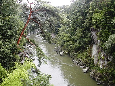 ![]() 紅葉の名所でもある天竜峡。 諏訪湖から流れてくる天竜川の水は、濃い緑色をしていました。 |