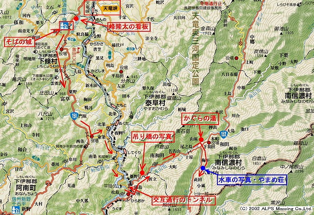 ![]() 天竜峡からやまめ荘までのルートです。 |