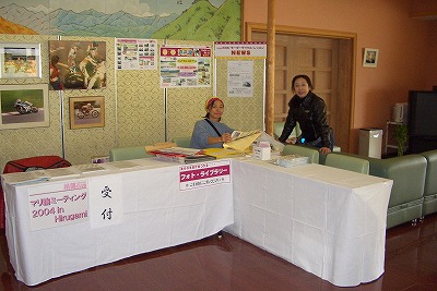 ![]() 10月16日 ホテルのロビーの一角を借りて、マリ輪専用の受付を設置。 受付嬢のべにさんと、足手まといながらお手伝いしたチーコ。 |