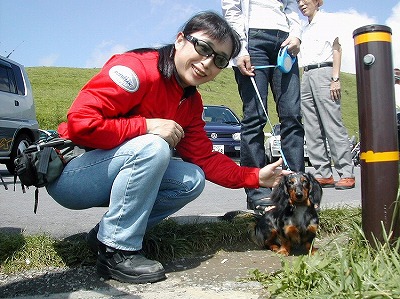 ![]() 駐車場で見かけたDaks。自分のうちと一緒の種類の ワンコを見かけると、つい話しかけてしまいます。 |