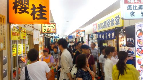 ![]() 食事も済み、隣の函館朝市で実家へ送るお土産を見て歩きます。 |