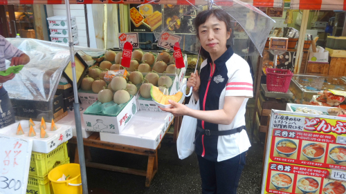 ![]() お土産も送り、外に出て北海道ならではの、赤肉メロン\300円を 頂きましたが、普通のメロンとは又違った甘さで美味しかったです。 |