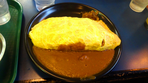 ![]() 私はオムライスカレー\650円を注文。 写真では大きさが伝わりませんが、とても全部食べきる事が出来ない 特大サイズなのに、安くて美味しくて、私達の地元にもあったらなぁと思います。 |