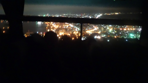 ![]() なんとかギリギリセーフの夜景写真。 上の方1/3は雲で見えませんが、感動的な夜景がこの悪天候の中、見られた事に感謝です。 |