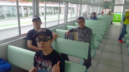 ![]() ガイドさんの軽妙なおしゃべりが、乗客の緊張感を和らげてくれます。 |