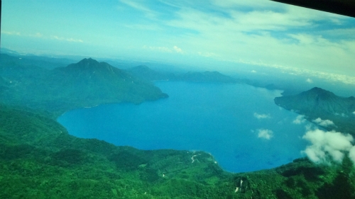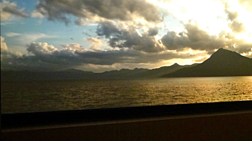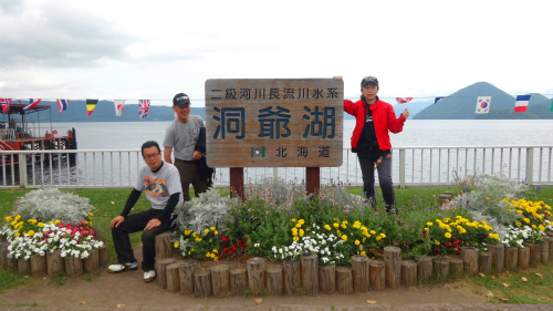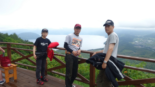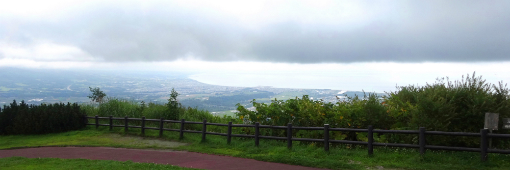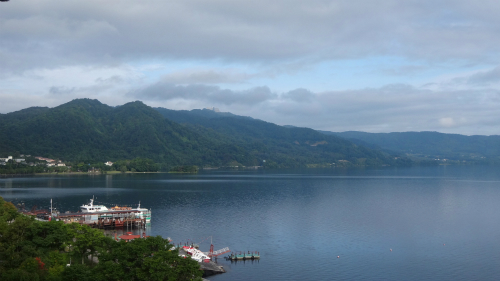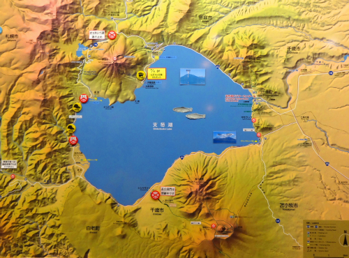 ![]() 左が洞爺湖で、右が現在いる支笏湖、左上がこれも天候のせいで見る事が 出来なかった羊蹄山1,898mです。 |