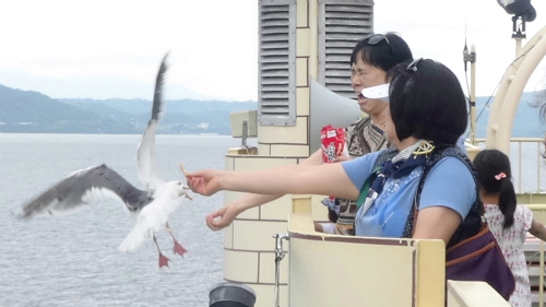 ![]() 次の観光船はお客さんも多くなり混んできました。 |