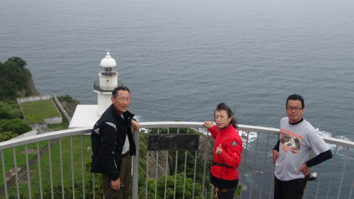 ![]() 立待岬の碑の前で記念撮影。 |