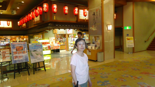 ![]() 巨大で豪華なホテルにビックリです。 玄関を入ってから大浴場までの距離の長い事。 後ろに見えるお土産売り場も、大きな商店のようです。 |
