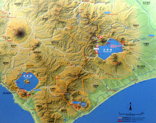 ![]() 支笏湖はカルデラ湖で周囲は約40km、最大水深360m、平均水深265mと、 秋田県の田沢湖に次いで、日本で2番目に深い湖です。水質は環境省の調査で 何度も日本一になっており、貯水量は琵琶湖に次いで2番目に多く、 琵琶湖の貯水量の3/4もあるそうです。 支笏湖の北にある恵庭岳は標高1,320m、 南にある風不死岳は1,103mもある高い活火山です。 支笏湖の周遊道路も数カ所で通行止めとなっている事も知らず、晴れていたら 一周ツーリングを予定していましたが、雨で無くても無理だったようです。 |
