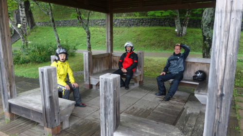 ![]() PM 13:35 屋根のある休憩所で休んでいきます。 |
