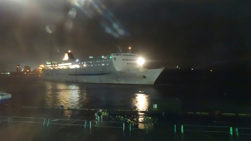 ![]() PM 23:26 4時間近くの遅れでフェリーしらかばが秋田へ向け出港。 |