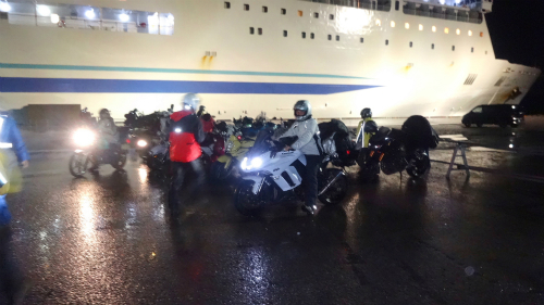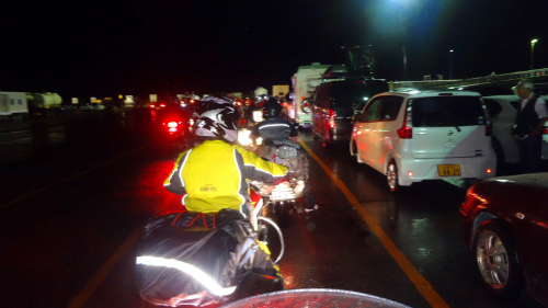 ![]() AM 2:19 やっとバイクのお客さんの乗船が始まるので、 バイクまで戻るようにとアナウンスがあり、バイクへ。 |