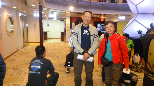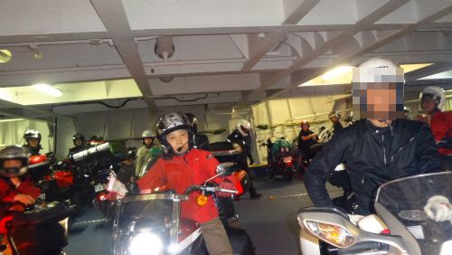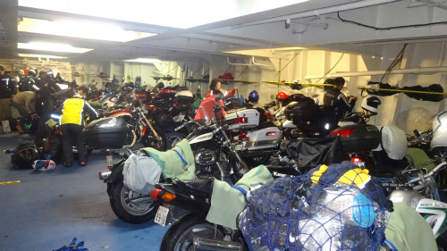 ![]() 今回初めて船尾のバイク専用の置き場に入れる事になり、 最後に入れた人が最初に出て行くため、私は最後に近かったため 出るときにモタモタしていたら、後のライダーの迷惑になるので、 これまた降りるときに緊張しそうです。 |