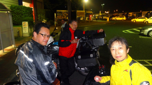 ![]() AM 0:19 まさかの日付が変わった8月20日、養老SAで最初で最後の休憩。 高速に入ってすぐ、賤ヶ岳SA手前で雨が降り出し、早めのカッパ着用で 難を逃れました。この後所々で強く降っているところもあり、 名神では大型トラックも多く緊張します。 |