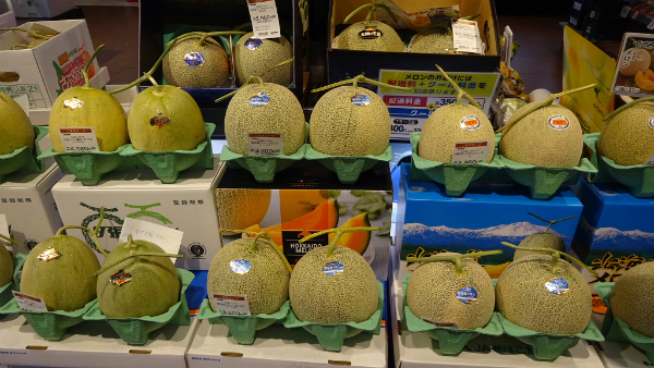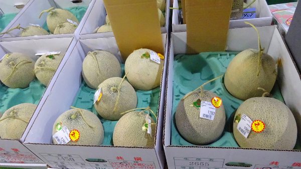 ![]() 夕張メロンや富良野メロン等ブランド品が並びます。 |