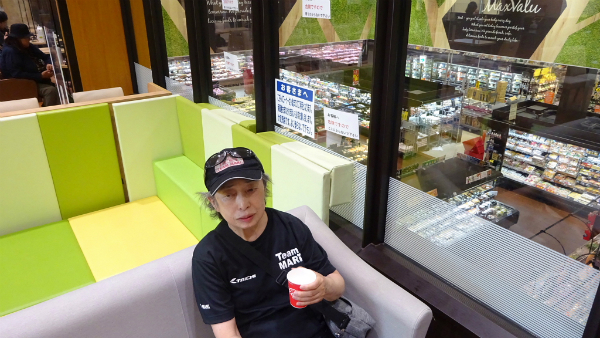 ![]() 2階に休憩所が有り、冷たい飲み物を飲みながら時間をつぶします。 |