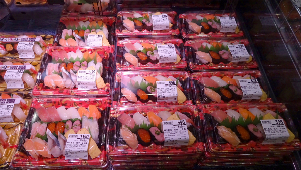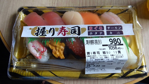 ![]() 1,000円程で蟹やウニまで入っているスーパーのお寿司。 |