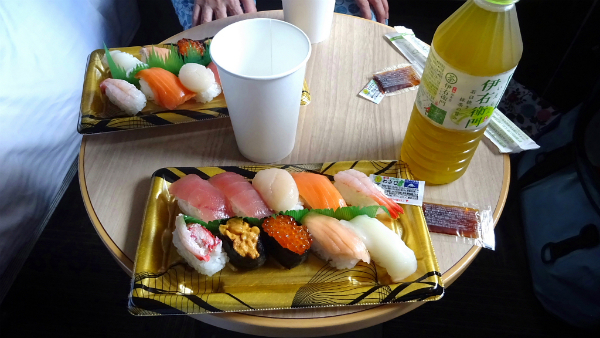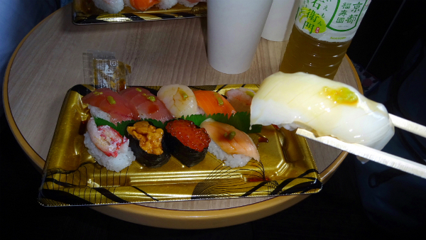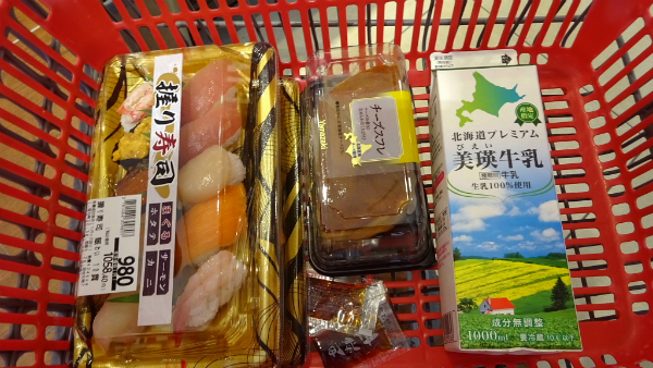 ![]() 結局夕食は食べに出掛けるのをやめて、お寿司を買って部屋でゆっくり食べることにしました。 |