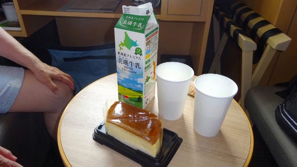 ![]() お昼代わりにマックスバリューで買ったチーズケーキと美瑛牛乳を頂きます。 |