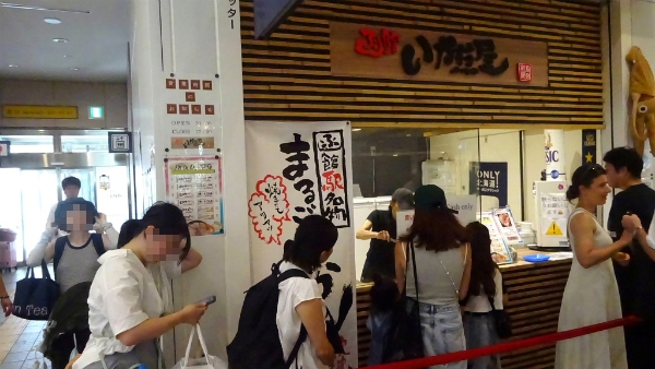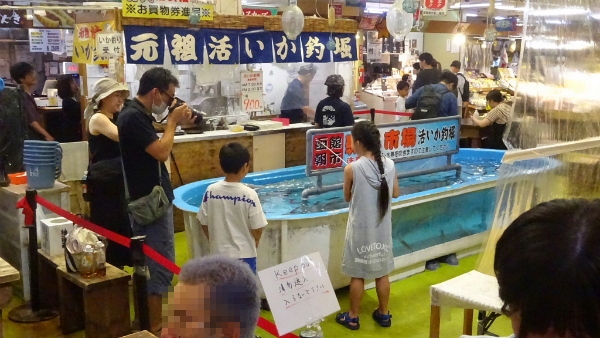 ![]() 函館名物のいか釣りは順番待ちが、グルッと2周も並んでいました。 |