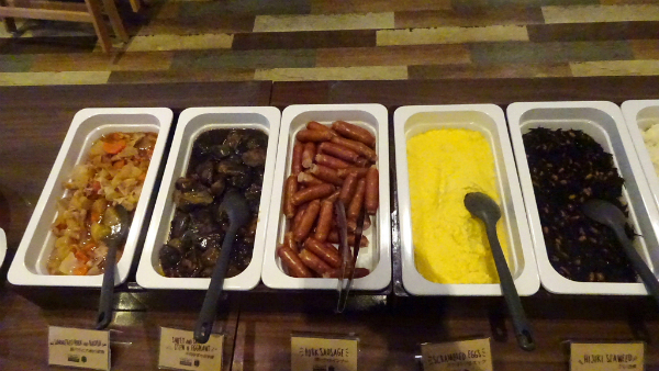 ![]() 他のホテルのように大きな寸胴鍋だと、底に味噌汁の具が沈んでいるので、 かき回して具をこぼさないようによそうのが面倒でしたが、 乾燥わかめ等の具を予めよそって、後はボタン一つで味噌汁が出てくるので、 これはいいと思いました。 |