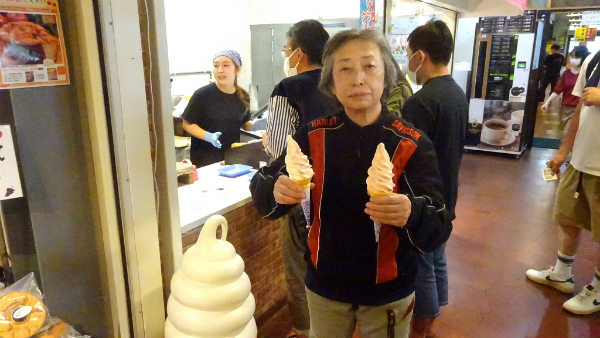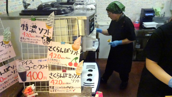 ![]() 名産のさくらんぼソフトを注文します。 |