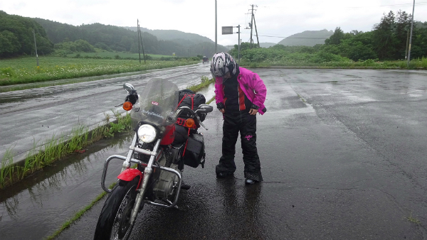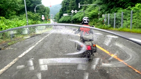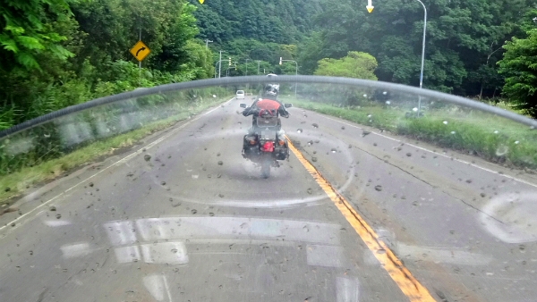 ![]() PM 1:36 雨が本格的に降って来たので、カッパを着用します。 |