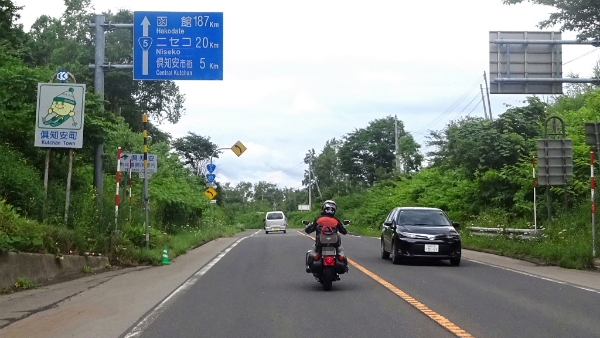 ![]() 日本海側の寿都・岩内方面への車が多い中、私達は左の長万部方面へ。 |