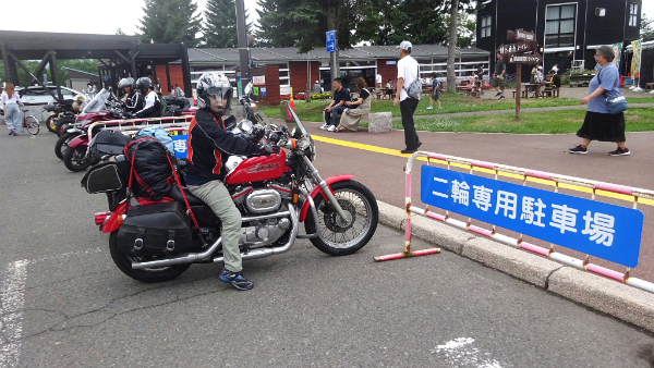 ![]() バイクは前方の専用駐車場に置きます。 |
