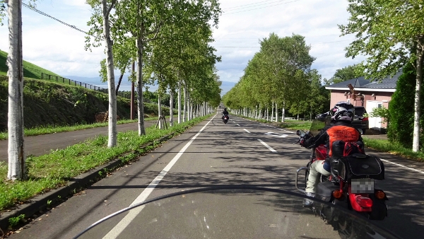 ![]() R5号線を右折し白樺並木の中を上って行きます。 |