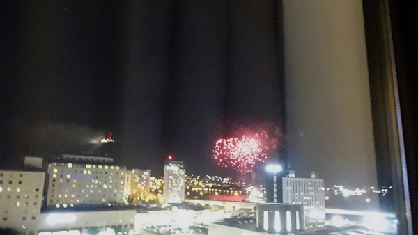 ![]() 食事が終わり部屋へ戻ると、アレアレ!!函館山の展望台が 雲に覆われてしまいました。 |