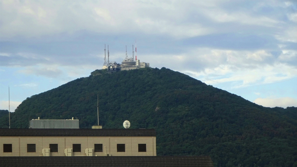 ![]() 摩周丸から見える函館山展望台。 |