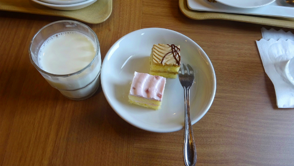 ![]() 朝からデザートのケーキも。 |