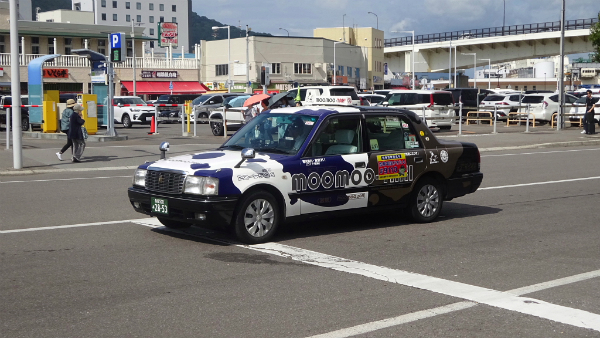 ![]() 函館名物のモーモータクシーを発見。 |