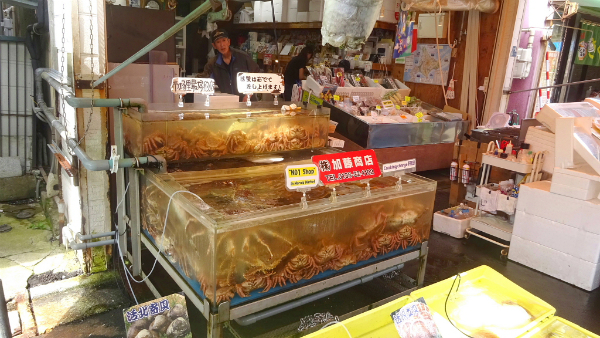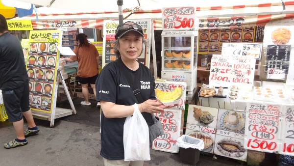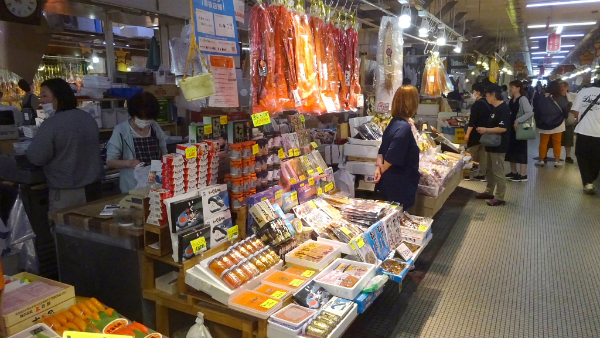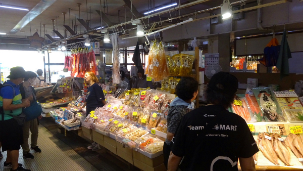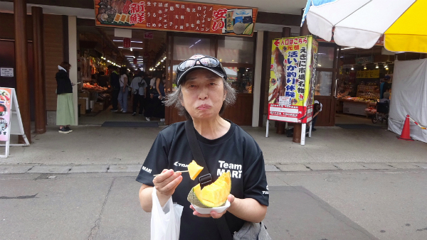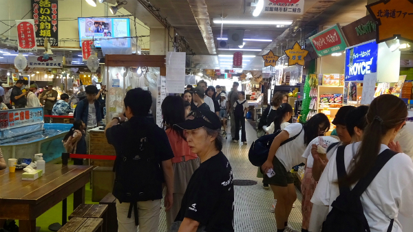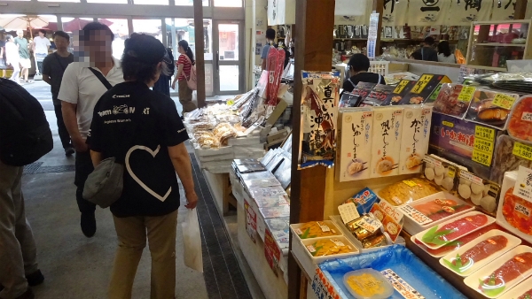 ![]() 函館朝市でお土産を探します。 |