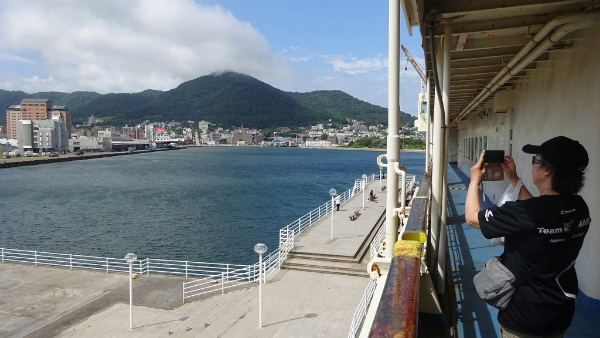 ![]() 操舵室から見える函館山。 |