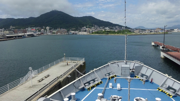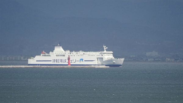 ![]() 丁度津軽海峡を渡る、津軽海峡フェリー「ブルーハピネス」が、 青森から到着しました。 |