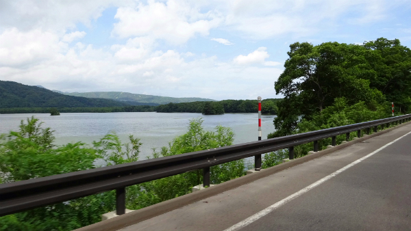 ![]() 木々が生い茂っているので、大沼は一瞬しか見ることが出来ません。 |