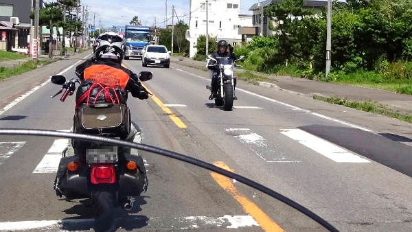 ![]() 対向のツーリングライダーと挨拶。 大体北海道で出会うツーリングライダーは、 大きな荷物を後ろに積んでいるので見分けがつきます。 |