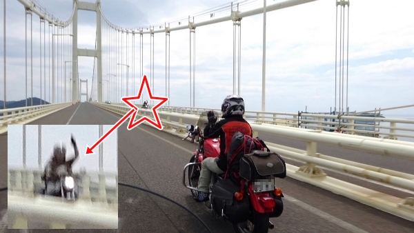 ![]() 対向のライダーが早々と挨拶しています。 |