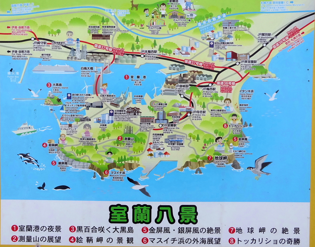 ![]() 今まで走ってきたR5は函館本線(山線)同様、内陸のニセコ方面へ向かい、 R37で室蘭本線と併走する形で室蘭に向かいます。 重複区間を走るR230は洞爺湖の横を通り、山越えで札幌に向かうルートです。 |