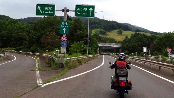 ![]() PM 1:57 登別室蘭ICから高速に入ります。 室蘭−登別間は市街地走行が続き、信号待ちが連続するので高速を使いました。 |