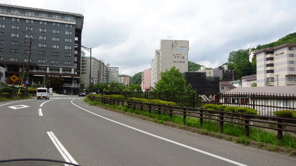![]() 温泉街の方へ降りていきます。帰りの駐車場へは上りになるので、 ここの駐車場だったら楽だったのにと、何故バイクは一番奥なのかと、 恨めしくなります。 |